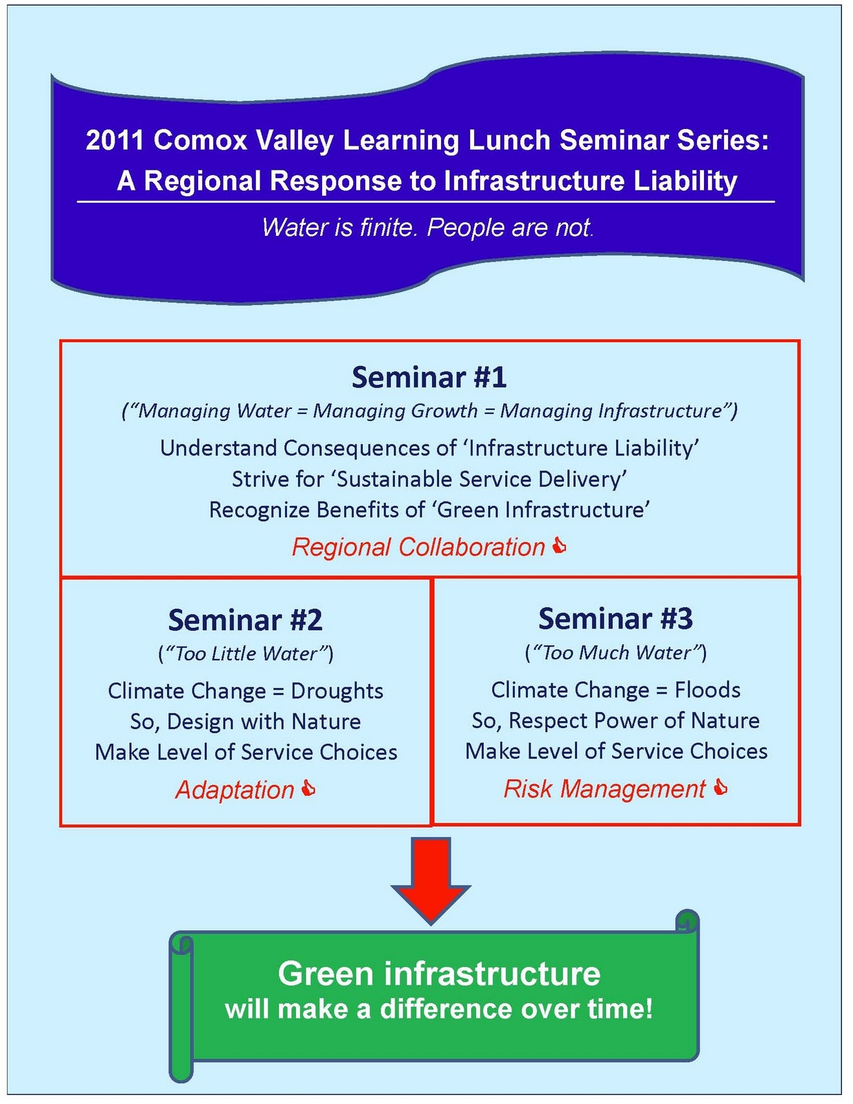 Seminar #1 in the 2011 Series will be hosted by the Town of Comox on April 14th. To register, click here. Space is limited. Registration will be capped at 45. The registration fee is $25 plus HST.